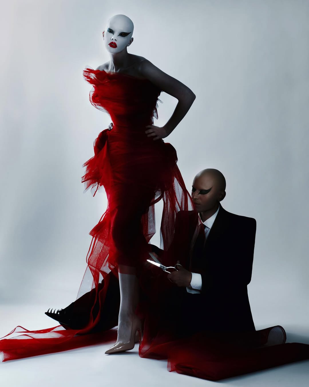 Their FW26/27 “One Percent” collection displayed curiosity as one of the show's main characters, with their silhouettes dark, gritty, and exaggerated. The body has morphed into shapes that feel futuristic and a declaration against those who benefit from being in the 1%. Something that’s never been critiqued in such a manner. They do so in creating looks that were subverted with BDSM-inspired accessories, including pearl gags, bundles of banknotes used as blinding masks, and red-palm "Guilt-Gloves" that appeared stained with blood. Their effect was hypnotic as you watched the models down the runway; you began to ask questions. Is this disturbing? What is the actual critique? Is this still in a fashion context?